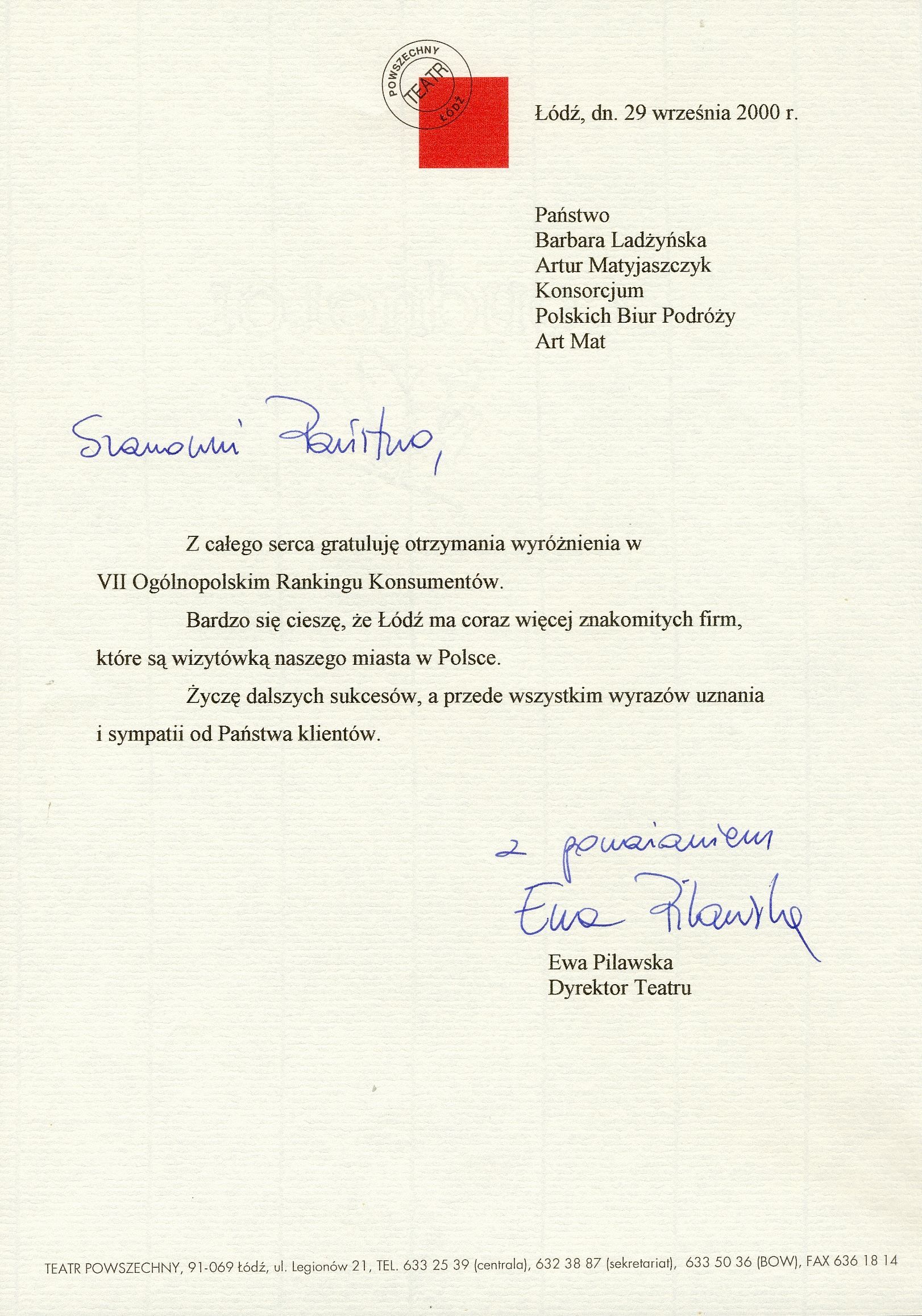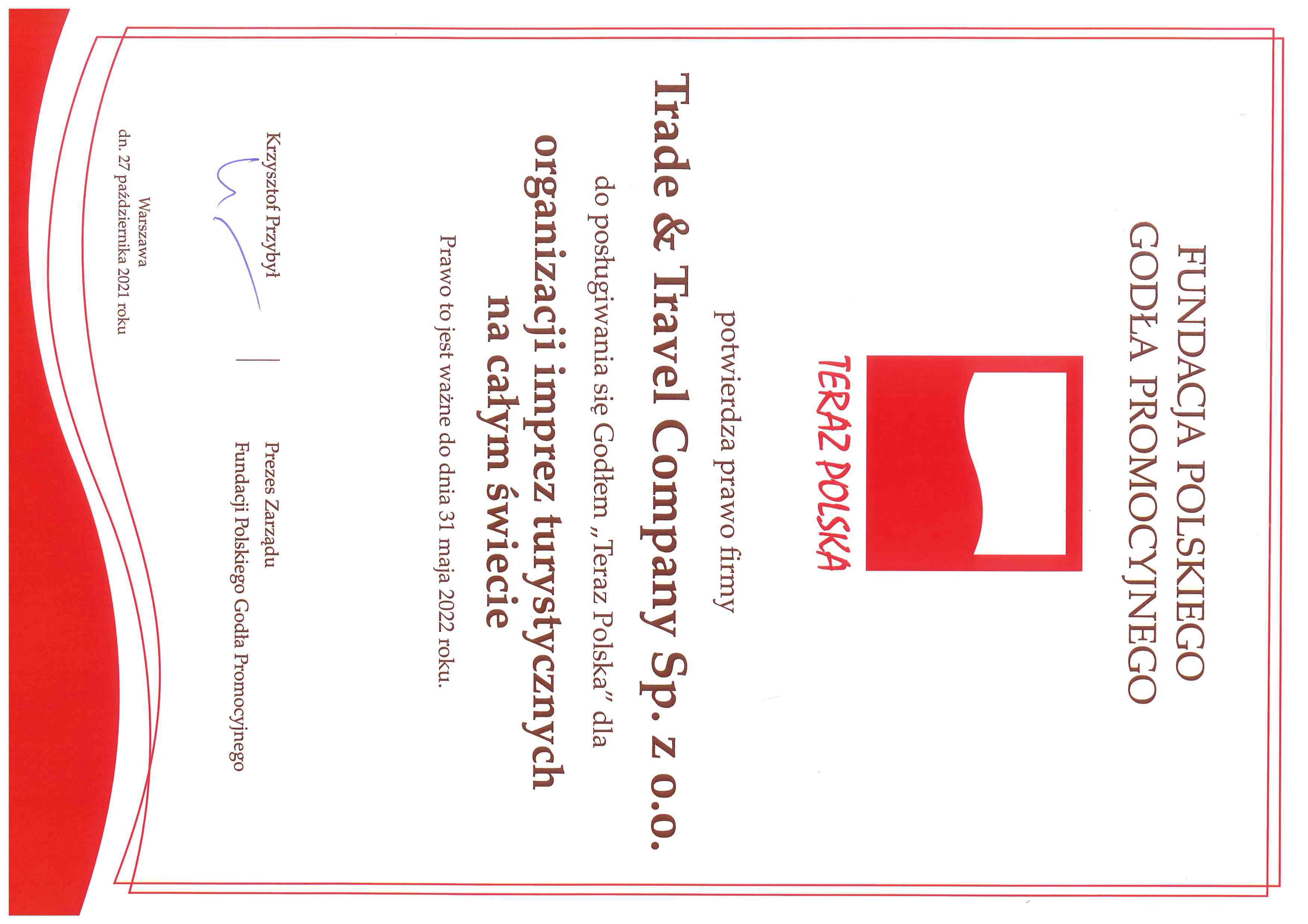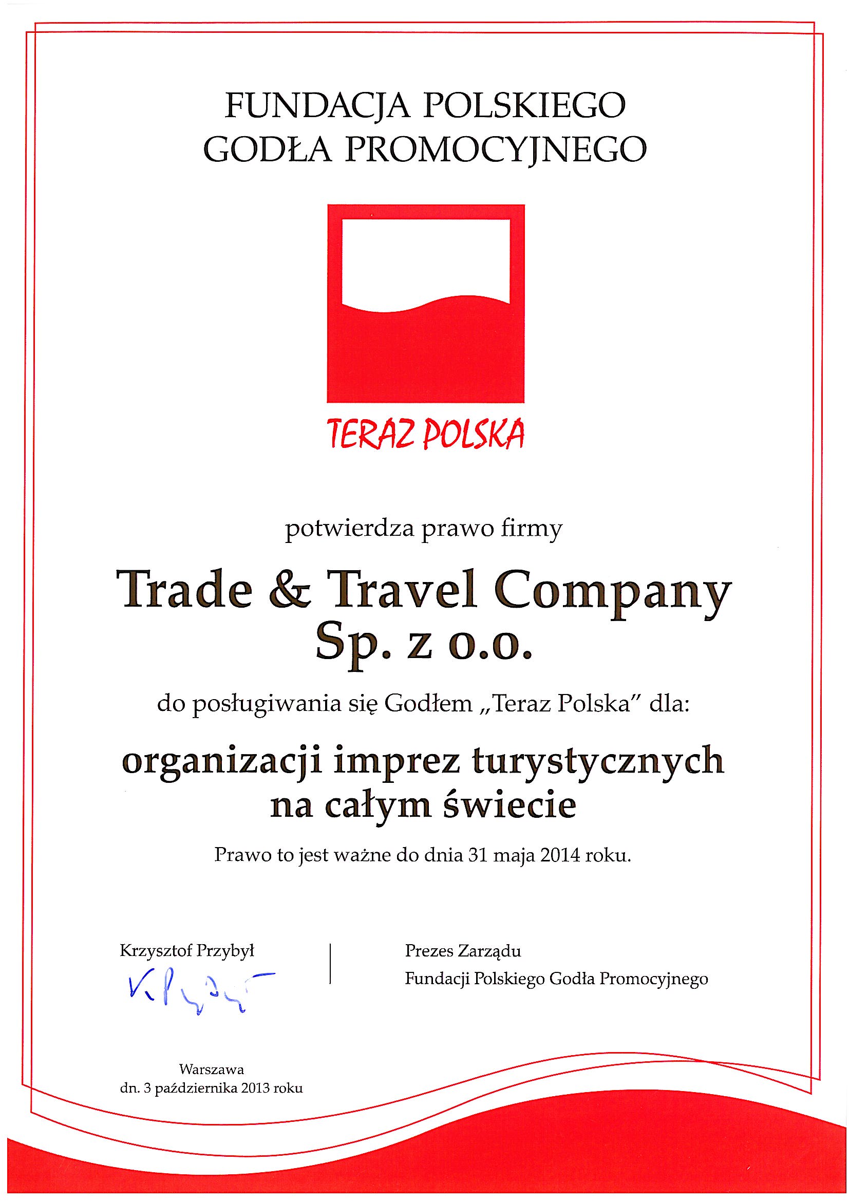 Dla potwierdzenia wysokiego poziomu jakości naszych usług przeszliśmy proces Certyfikacji ISO, uzyskując Certyfikat 9000:2008. Jesteśmy pierwszym biurem, które uzyskało Godło TERAZ POLSKA, a coroczna weryfikacja jakości naszych usług pozwala nam na stałe używanie tego nobilitującego Godła.